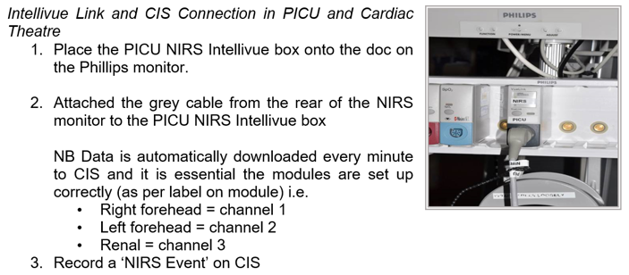 4. Grey cable and Phillips intellivue box, labelled ‘PICU NIRS’.