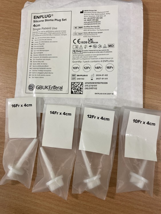 - The EN-Plug-S device should then be inserted into the patient’s stoma to ensure stoma patency on arrival to ED by a trained member of the ED team.