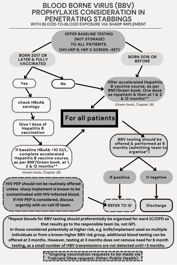 It should be used alongside the accompanying Standard Operating Procedure (SOP): BBV Prophylaxis for Penetrating Injuries, which provides full procedural detail and governance context.