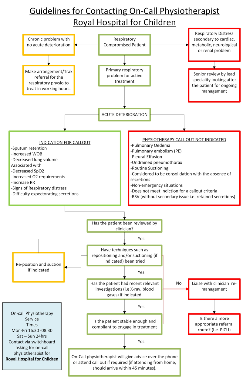 All children and young people admitted to Royal Hospital for Children, Glasgow that are deteriorating or at risk of deterioration and would benefit from emergency respiratory physiotherapy input outside of core hours RHCG physiotherapy hours.