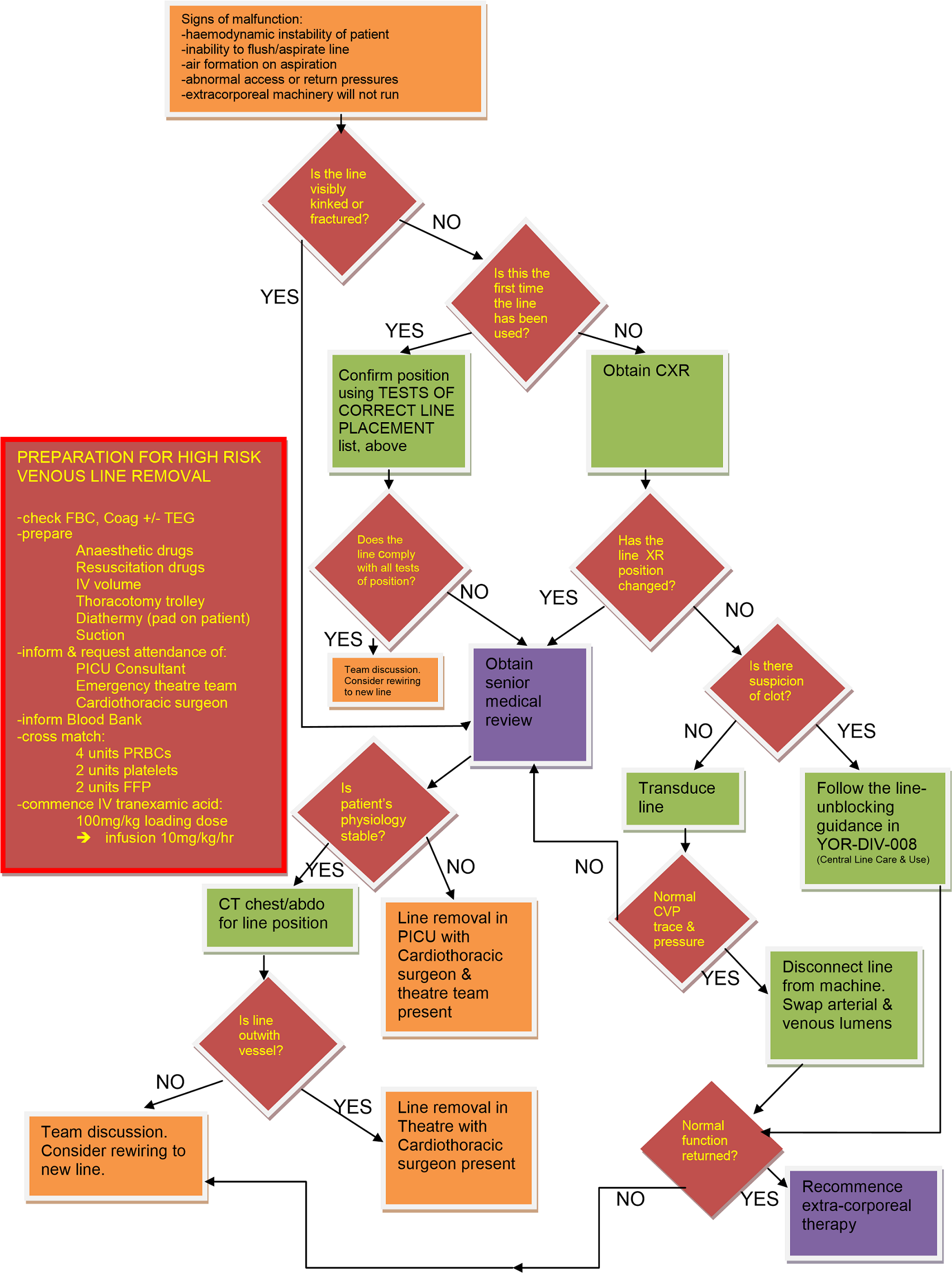 These lines can completely occlude the great veins in smaller patients, leading to venous stasis, congestion and risk of venous thrombosis. The lines themselves can also become obstructed with clot, particularly during periods of non-use, or conditions of marginal flow or under-anticoagulation. Care should be taken to HepLock the lines when not in use (see separate document: YOR-REN-001) and to ensure good blood flow and adequate anticoagulation during use.
