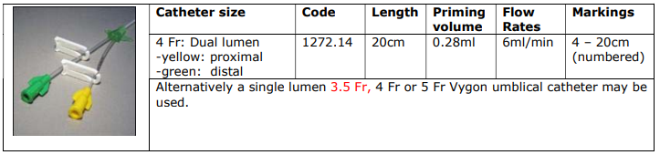 If the catheter does not pass though the ductus venosus it usually comes to lie within the portal vein and cannot be further advanced - If so it should be withdrawn until it is possible to sample blood easily via the distal (green) lumen. This should be sufficient to allow free flow of infusate through the catheter when used. Alternatively consider inserting a smaller diameter catheter.