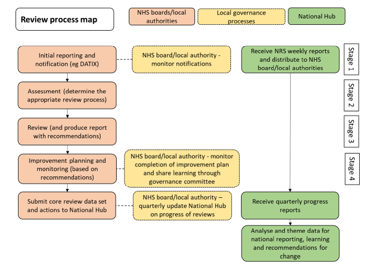 - If learning is identified from the reviews, then improvement and monitoring are taken on board by the relevant teams.